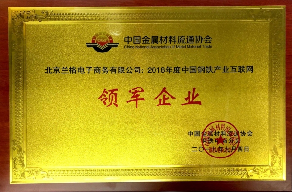 - 兰格云商荣膺“2018年中国钢铁产业互联网领军企业”2019-9-9