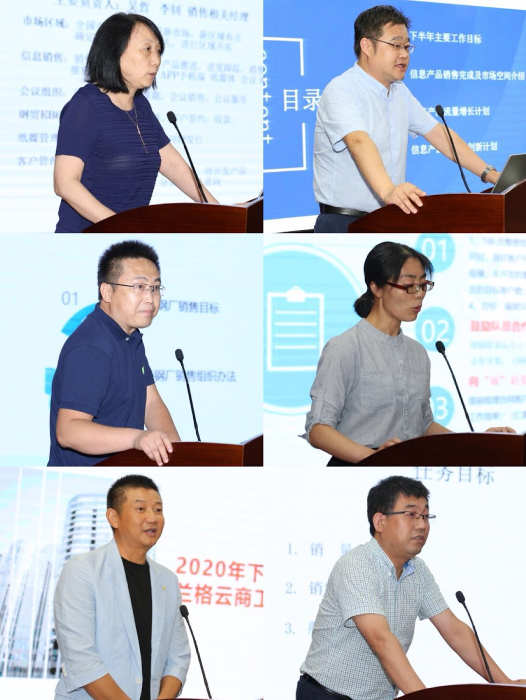 副总经理李晓琳、信息事业部总经理马力、信息事业部副总经理牛国升、天津区域经理屈丽萍、副总经理兼云商事业部总经理张登祥、现货交易中心总经理乔雪周、集采中心总经理蔡春敏、副总经理兼物流中心总经理宋春雷、兼任供应链金融总经理刘陶然、数字科技事业部总经理朱坤龙、产品部总监樊洋洋、实施部总监阮锐,分别发布了2020年下半年的运营计划和目标。