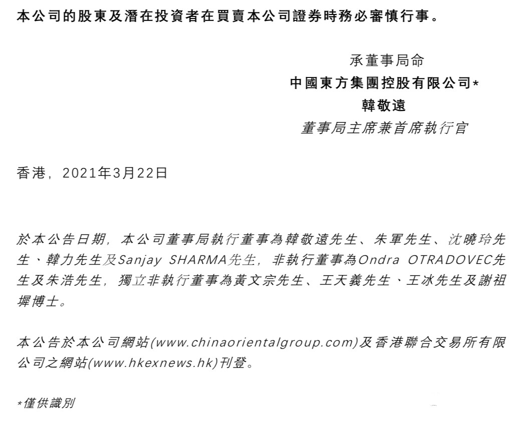 中国东方集团(以下简称集团)发布公告,为遵守由唐山市大气污染防治工作领导小组办公室发布日期为2021年3月19日的《关于报送钢铁行业企业限产减排措施的通知》下的产能控制措施,河北津西钢铁集团股份有限公司(津西钢铁,公司间接拥有97.6%的附属公司)由2021年3月20日至2021年12月31日止须限制生产30%。