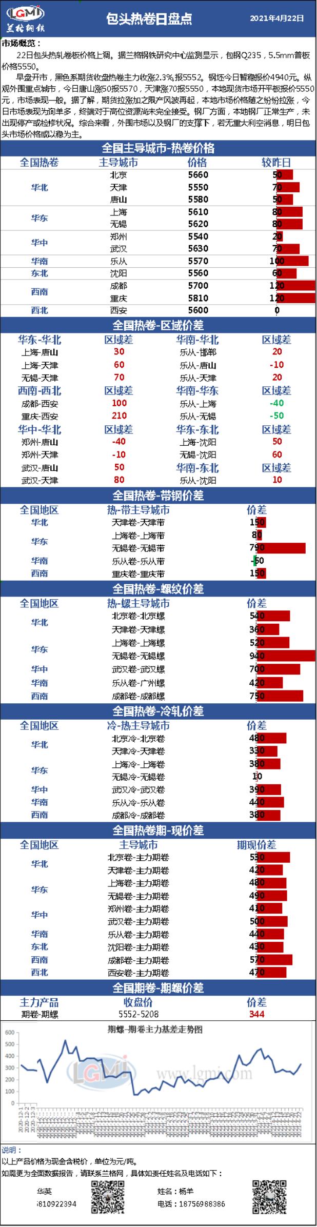 - 4月22日包头热卷价格上调 明日或将暂稳2021/4/22