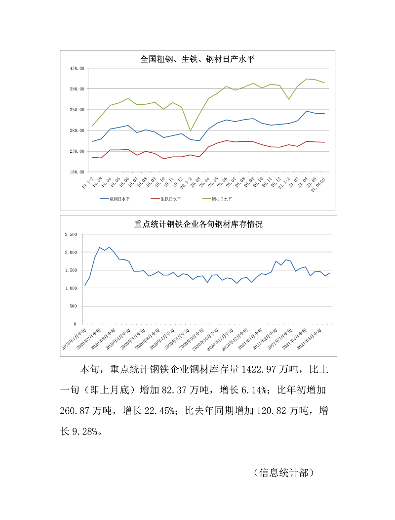 中钢协:2021年6月上旬钢铁企业生产与库存情况