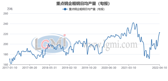 【粗钢旬产】4月上旬重点钢企粗钢日产小幅上升