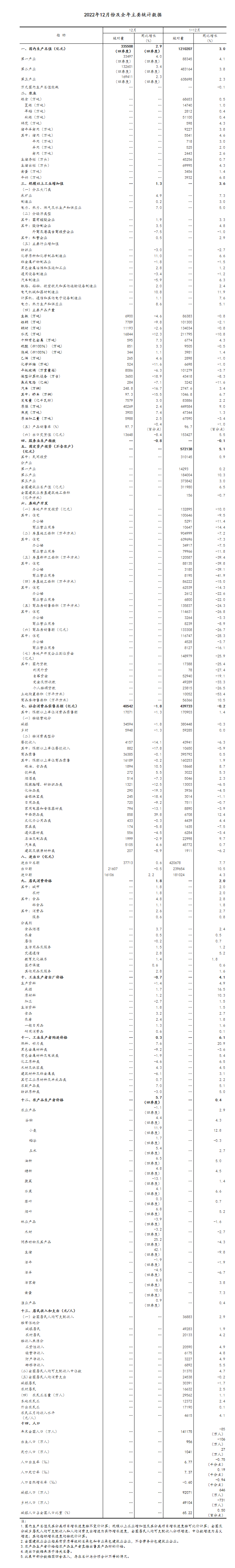 (1)国内生产总值及其分类项目增长速度按不变价计算,规模以上工业增加值及其分类项目增长速度按可比价计算,均为实际增长速度;其他指标除特殊说明外,按现价计算,为名义增长速度。