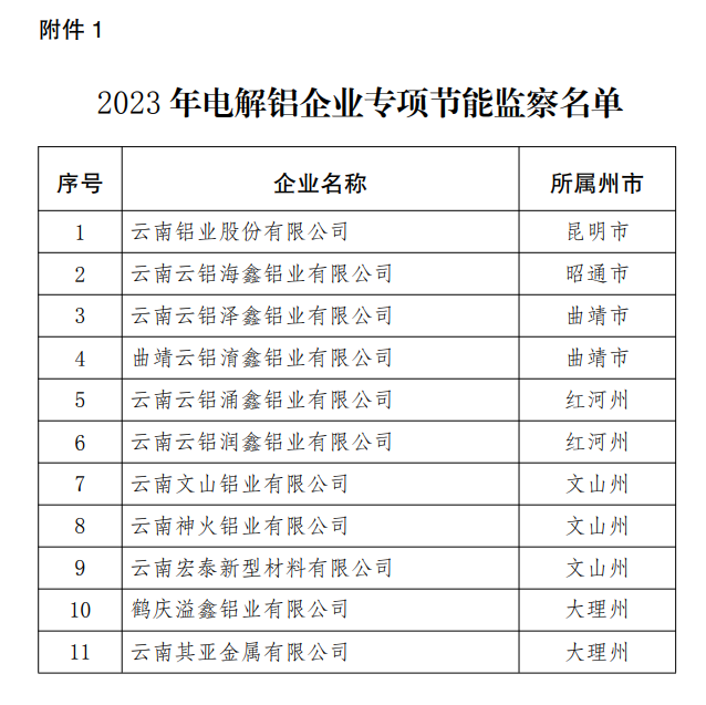 - 云南关于开展2023年电解铝企业专项节能监察的通知2023/2/15