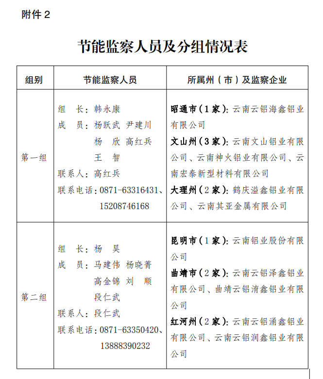 (一)请相关州(市)发展改革委派专人配合开展本地区电解铝企业的现场节能监察,并通知企业做好相关准备工作。节能监察人员及分组情况详见附件2。