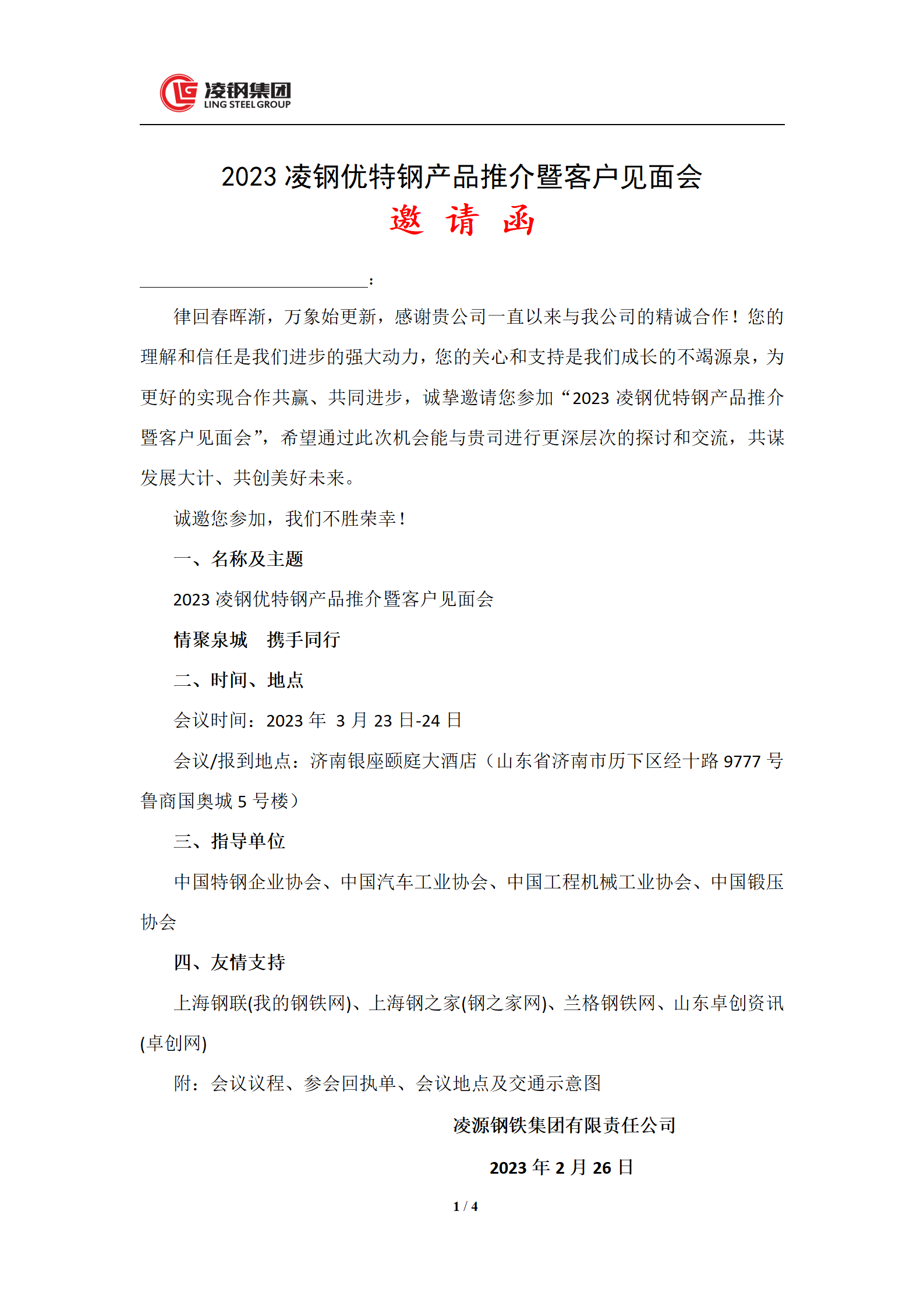 - 2023凌钢优特钢产品推介暨客户见面会2023/3/1