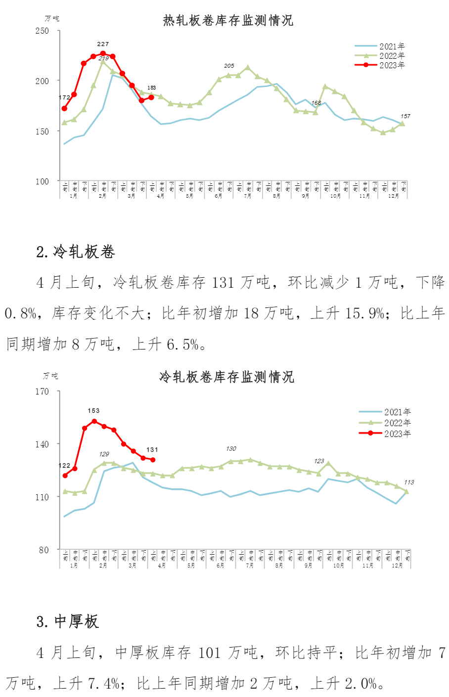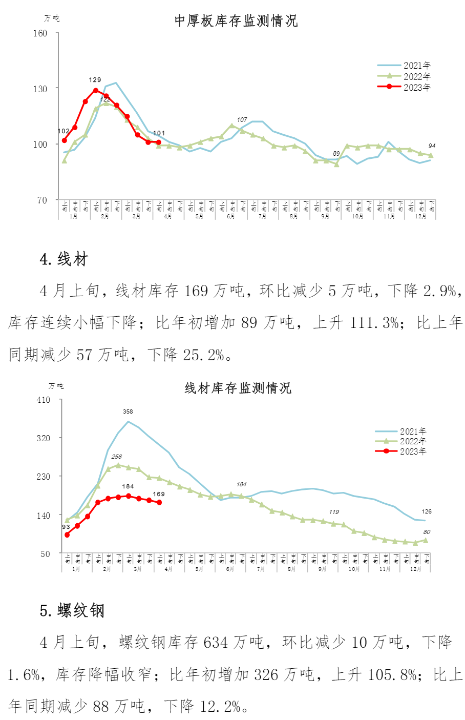 - 2023年4月上旬重点统计钢铁企业产存情况2023/4/13