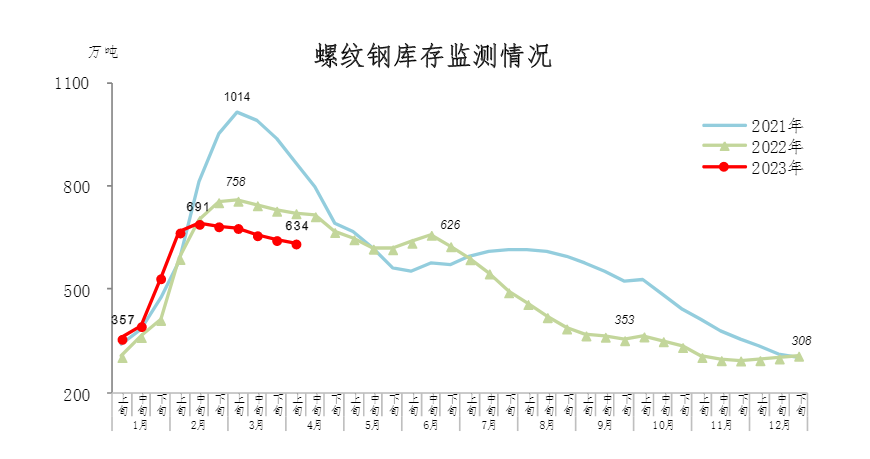 - 【钢厂库存】4月上旬重点钢企钢材库存再次上升2023/4/13