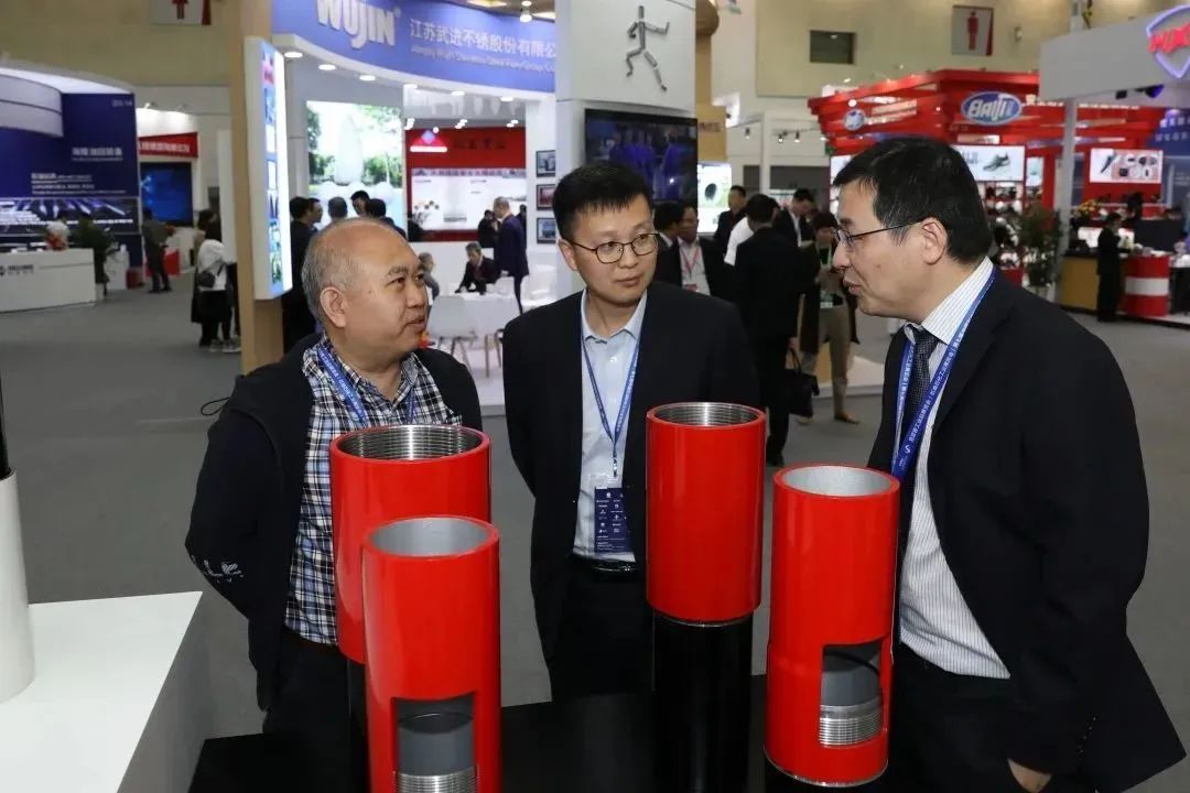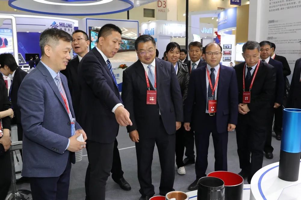 中国石化股份公司高级副总裁、中国石油和石油化工设备工业协会会长刘宏斌一行莅临天管展区参观指导。中信特钢管材研究院天津分院常务副院长史彬介绍了公司特殊石油套管、特种钢管的研发与应用情况。