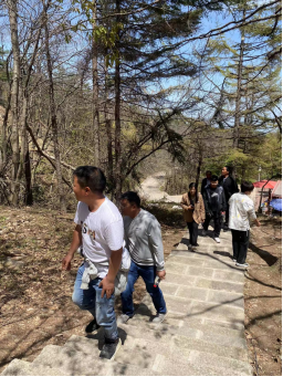 在郝建勇董事长的带领下,大家沿着山间小路不断向上攀爬。汗水流淌过每个人的脸庞,脚步一直坚定向前。在感受林间自然风光、呼吸清新空气的同时,所有人都在挑战着自我、提升着自我。