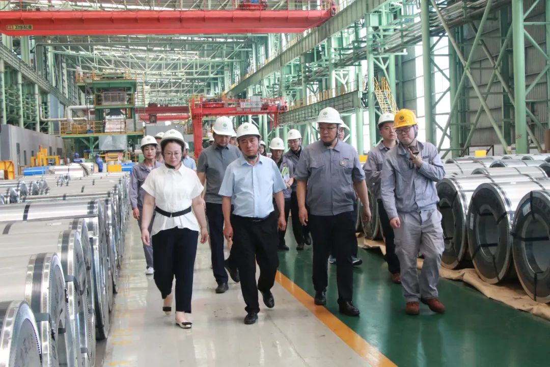 随后,袁莉一行参观了1500mm 冷轧卷板彩涂生产线,深入了解员工作业环境及企业生产运行情况。