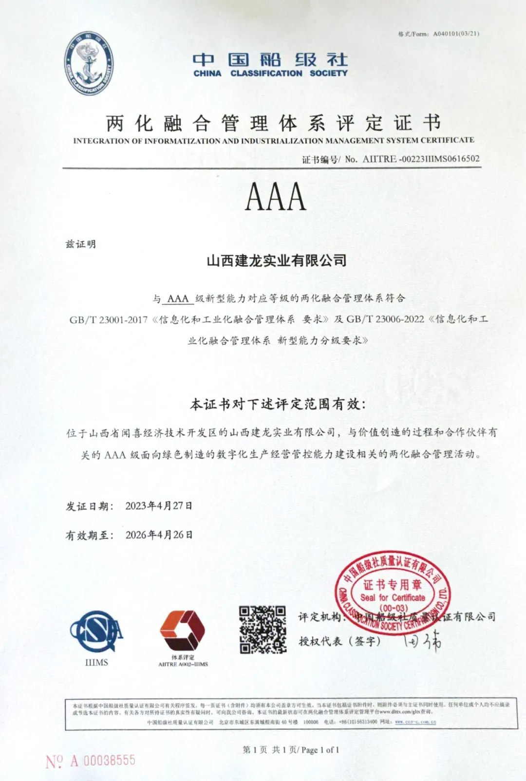 - 国家级!山西建龙获两化融合“AAA”级认证2023/8/1