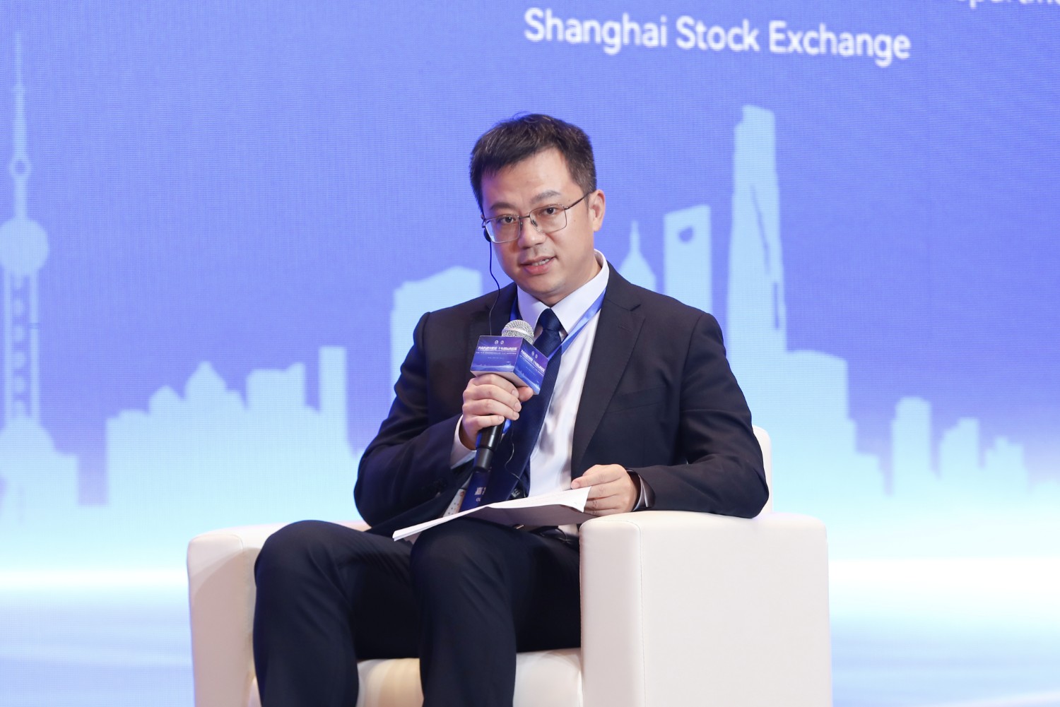 图为上海证券交易所国际合作部副总监朱晟在大会上做观点分享