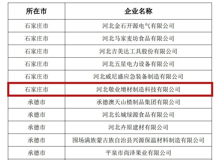 近日,河北省专精特新中小企业复核名单公示期结束,敬业增材制造公司成功通过河北省专精特新企业复核与认定,再度荣获认可,成为河北省专精特新中小企业。