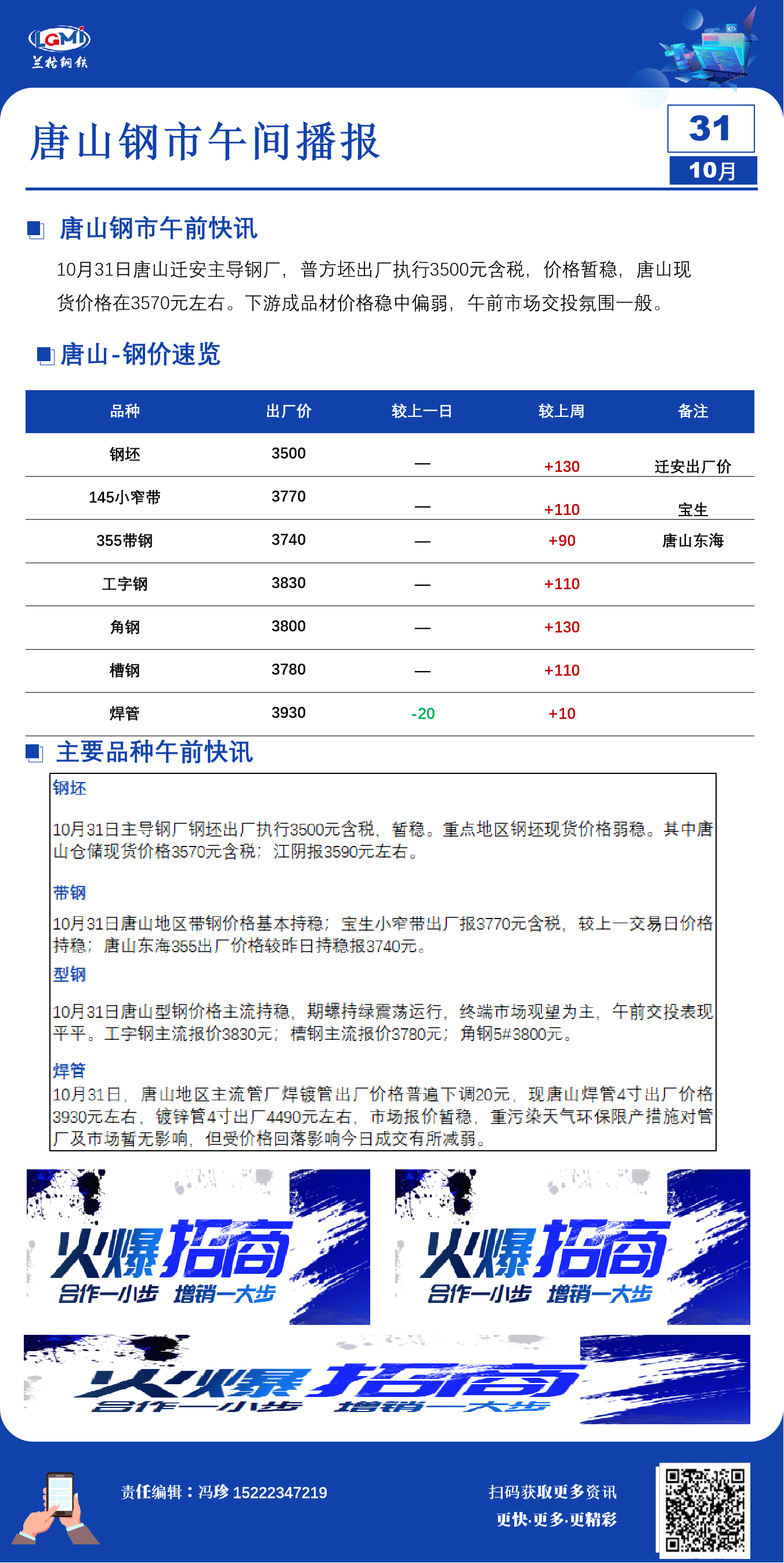 - 10月31日酒钢建筑钢材出厂价格保持平稳2023/11/1