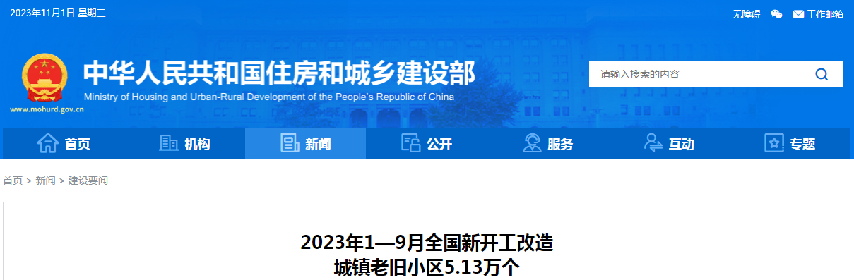 2023年1—9月全国新开工改造 城镇老旧小区5.13万个