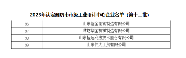 近日,潍坊市工业和信息化局公布了2023年度潍坊市市级工业设计中心名单,经过层层筛选,磐金钢管工业设计中心成功入选2023年度市级工业设计中心,实现了公司创新平台的新突破。