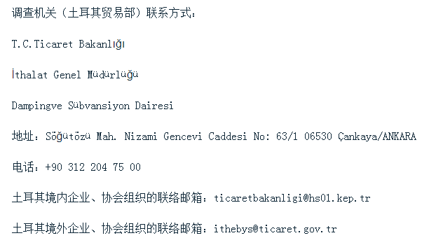 2023年10月31日,土耳其贸易部发布第2023/31号公告,应土耳其钢铁生产商申请,对原产于中国、印度、日本及俄罗斯的热轧板卷启动反倾销调查。涉案产品的土耳其税号为7208.10.00.10.00、7208.10.00.90.00、7208.25.00.10.00、7208.25.00.90.00、7208.26.00.10.00、7208.26.00.90.00、7208.27.00.10.00、7208.27.00.90.00、7208.36.00.10.00、7208.36.00.90.00、7208.37.00.10.11、7208.37.00.10.19、7208.37.00.90.12、7208.37.00.90.18、7208.37.00.90.19、7208.38.00.10.11、7208.38.00.10.19、7208.38.00.90.12、7208.38.00.90.18、7208.38.00.90.19、7208.39.00.10.11、7208.39.00.10.19、7208.39.00.90.12、7208.39.00.90.18、7208.39.00.90.19、7208.40.00.10.11、7208.40.00.10.19、7208.40.00.90.11、7208.40.00.90.19、7208.51.98.10.00、7208.51.98.90.00、7208.52.10.10.00、7208.52.10.90.00、7208.52.99.10.00、7208.52.99.90.00、7208.53.10.10.00、7208.53.10.90.00、7208.53.90.10.00、7208.53.90.90.00、7208.54.00.10.11、7208.54.00.10.19、7208.54.00.90.11、7208.54.00.90.19、7208.90.80.10.11、7208.90.80.10.12、7208.90.80.20.11、7208.90.80.20.12、7211.13.00.11.00、7211.13.00.19.00、7211.13.00.29.00、7211.14.00.10.00、7211.14.00.21.11、7211.14.00.21.12、7211.14.00.29.11、7211.14.00.29.12、7211.14.00.31.00、7211.14.00.39.00、7211.14.00.41.00、7211.14.00.49.00、7211.14.00.50.00、7211.19.00.10.00、7211.19.00.21.00、7211.19.00.29.00、7211.19.00.31.00、7211.19.00.39.00、7211.19.00.50.00、7212.60.00.11.11、7212.60.00.11.21、7212.60.00.11.29、7212.60.00.19.11、7212.60.00.19.21、7212.60.00.19.29、7212.60.00.21.11、7212.60.00.21.12、7212.60.00.29.11、7212.60.00.29.12、7225.19.10.00.11、7225.19.10.00.19、7225.30.90.00.11、7225.30.90.00.19、7225.40.40.00.00、7225.40.60.00.00、7225.40.90.00.00、7226.91.91.00.00、7226.91.99.00.00。公告自发布之日起生效。