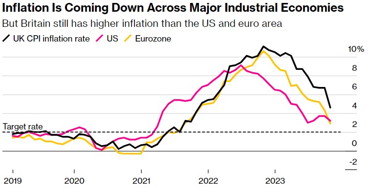 英国通胀率跌至两年来的最低水平,让市场更加确信,英国央行最早将于明年年中降息。交易员们继续押注英国央行已经结束了加息。交易员们押注,到6月份,英国央行将首次全面降息25个基点,此前预期为8月份。