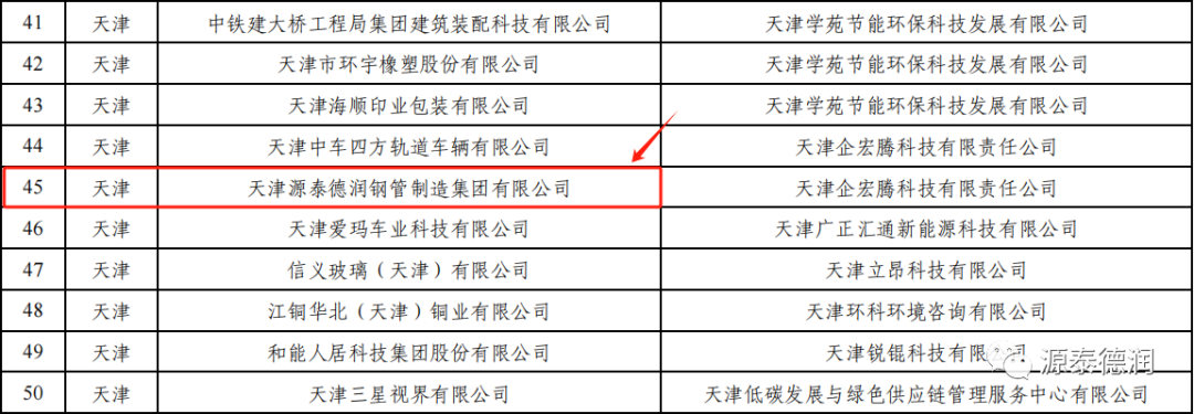 为贯彻落实《“十四五”工业绿色发展规划》《工业领域碳达峰实施方案》,持续完善绿色制造体系,助力工业领域碳达峰碳中和,近期,工信部将2023年度绿色制造名单予以公示,天津源泰德润钢管制造集团有限公司入选绿色工厂的榜单中。
