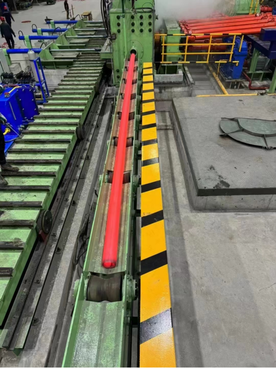 此条无缝管机组为国内先进的两辊斜轧机组,生产直径83-168mm,壁厚5-16mm,主要生产石油套管、管线管、油缸管、液压支柱管、冷拔专用管、汽车用管、网架管、管道管、机械加工、工程机械等用管。随着科环二期项目的顺利投产,山东大洋集团已拥有四条无缝管机组,五条热扩管机组,年产70余万吨,拥有调质炉及化验室,超声、漏磁探伤、水压机等,热处理线常年对外加工。