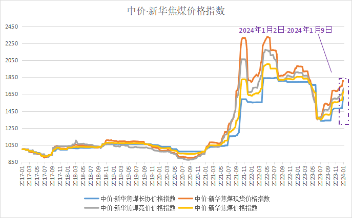本期(2024年1月3日-2024年1月9日)中价·新华焦煤价格指数整体上行。
