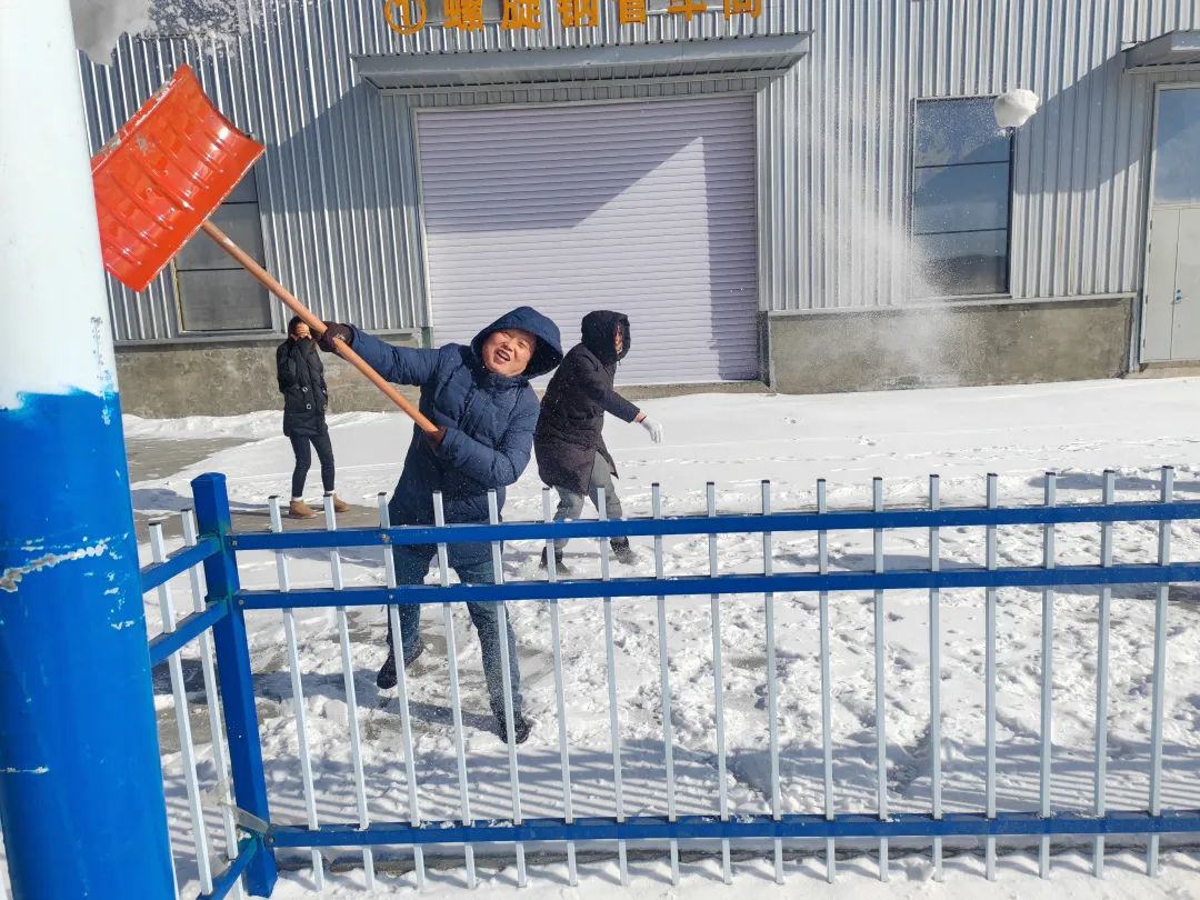 一夜飞雪让大地银装素裹,白雪皑皑,雪落在城市,成了一道风景,在欣赏美景的同时,集团的家人们也考虑到雪天带来的安全隐患,积极组织扫雪除冰行动。清雪过程中,诚钢家人纷纷拿着铁锹、扫帚等工具,扫积雪、清冰层,互相配合、分工有序,大家齐心协力、热情高涨,为厂区职工开辟一条“安全通道”大家用热情驱走了寒冷,用实际行动温暖了人心。