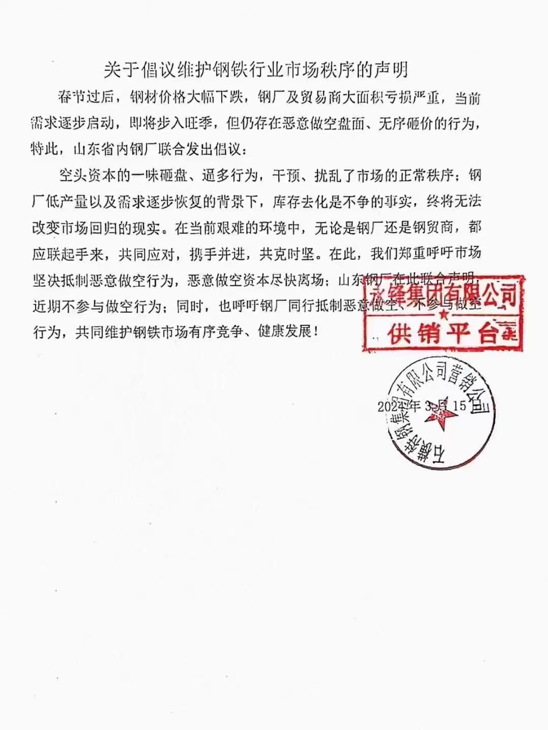 - 兰格快评:山东钢厂联合减产维护市场稳定 3月份减量超三成2024/3/19