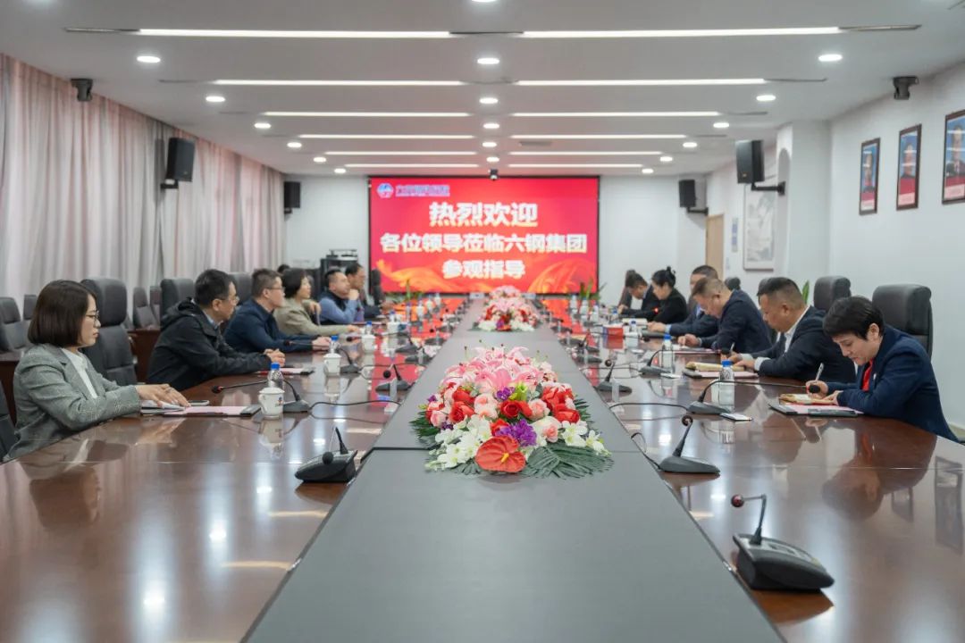 座谈前,双方领导共同在智能管控中心听取了电子沙盘讲解,先后参观了生产调度指挥中心、智慧展厅及“红色熔炉”爱国主义教育基地、铁路专用线,对六钢集团的项目建设、运营规划、发展历程及党建文化进行了深入的了解。