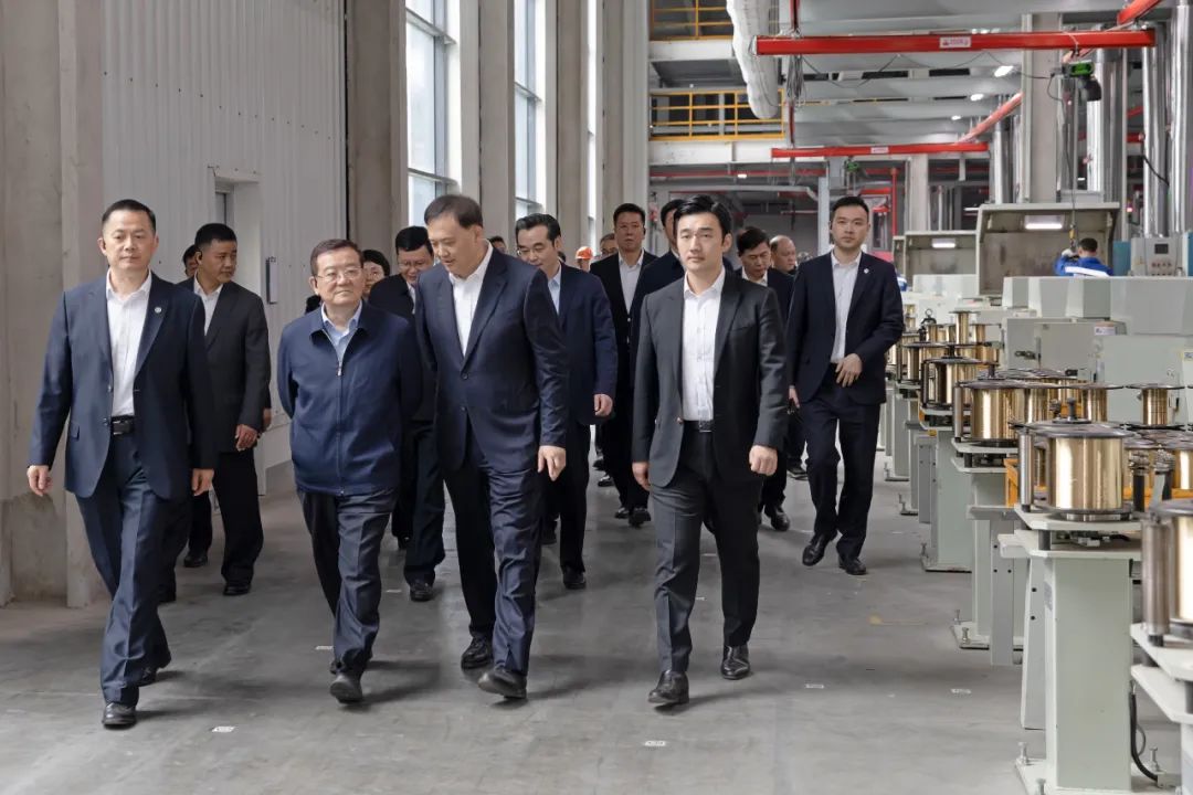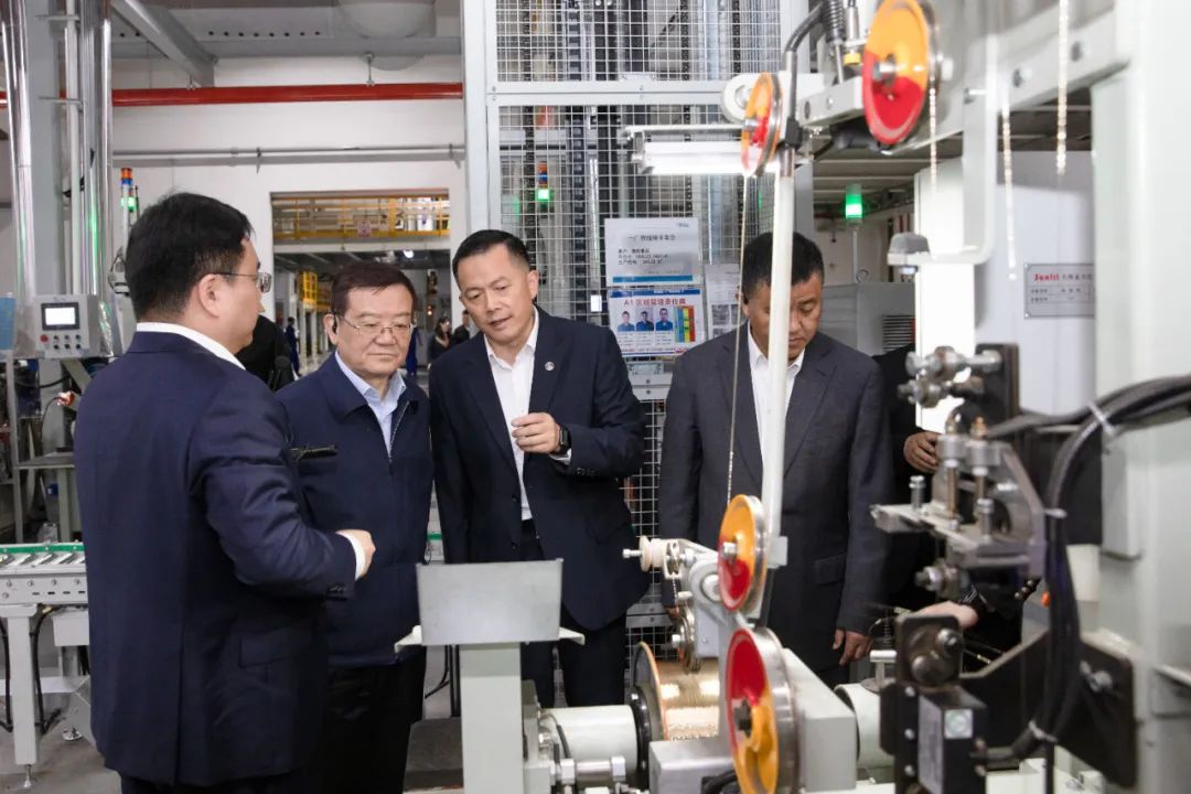 徐乐江一行来到中天淮安项目展厅、内河码头、实验室和钢帘线一厂生产车间,详细了解项目建设进度、工艺流程、市场前景等情况,对中天钢铁集团重大项目建设成效给予肯定。