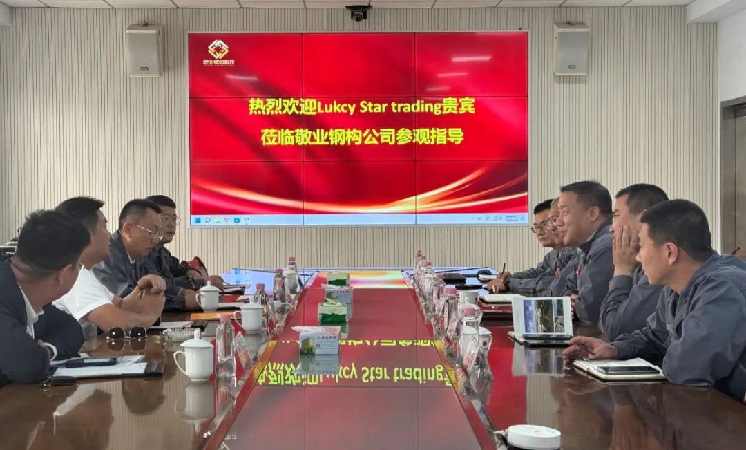 通过陪同圭亚那客户参观敬业钢构公司生产基地以及进行专业技术交流,双方对之后的长期、稳固合作战略达成共识,希望未来双方携手共进,共创圭亚那钢结构市场新发展。同时,双方也探讨了未来的战略规划与实施路径,为可持续发展奠定了坚实基础。