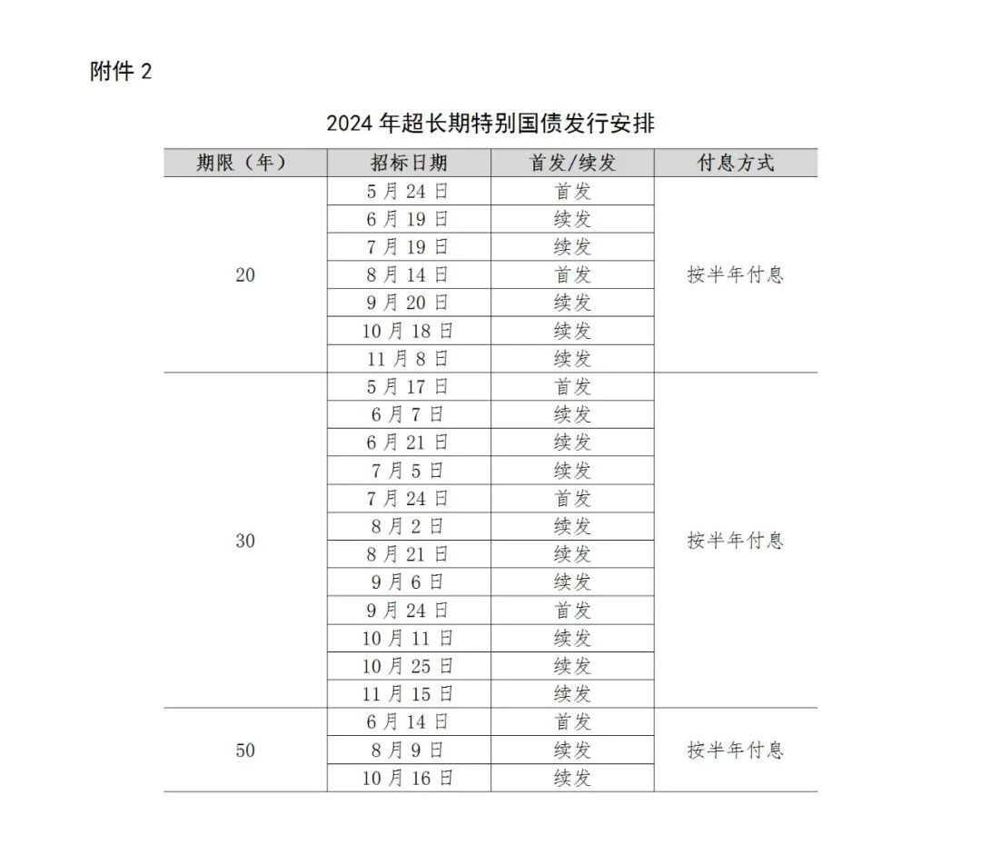 关于公布2024年一般国债、超长期特别国债发行有关安排的通知
