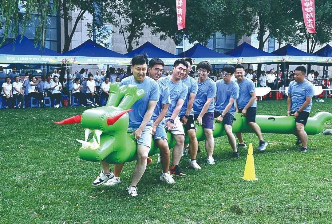 笑着、跑着、玩着、闹着,有激烈竞争,有放松解压,赛场成为欢乐的海洋。友谊第一比赛第二的体育精神在这一刻得到最好的诠释,健康积极、团结奋进的企业精神在这里持续传递。本次趣味运动会共4个竞技项目。“旱地龙舟”项目是参赛队员通过团队协调配合快速带动“龙舟”在跑道上快速前进。“灌篮高手”项目中需要队员依次跑至终点区完成投篮,最先完成10颗球投篮返回起点的队伍获胜。“同心鼓”项目中,参加队员手拿一根连接着鼓的绳索,所有人共同拉绳将鼓上的球颠起来,规定1分钟时间内,以颠起来的球击鼓次数多的小组获胜。“滚滚向前”项目要求参赛队员迅速推动气垫向前滚动,并以接力的形式将后排的圆柱转移到前排,使气垫向前行进。