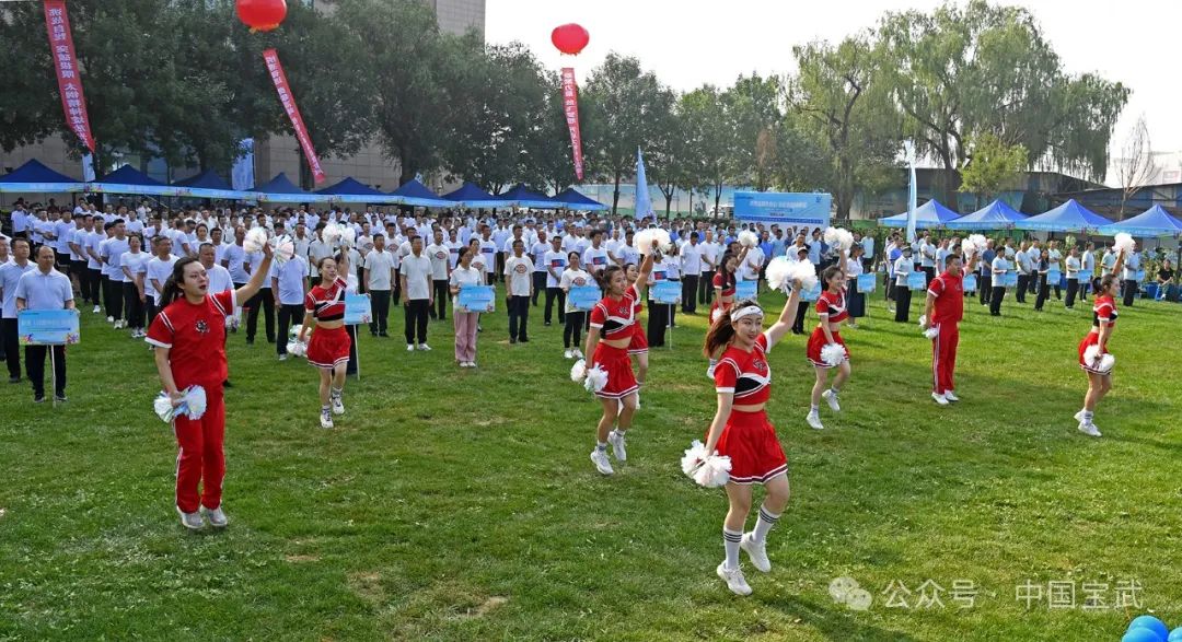 在太钢团委青工表演的街舞《国风之霍元甲》、公司机关女职工带来的舞蹈《上春山》、花园体育中心教练老师们特意为本次趣味运动会编排的啦啦操后,全员参与热身操拉开比赛帷幕。