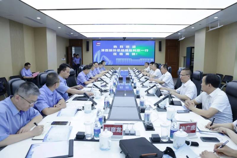 7月10日,津西股份总经理赵利欣一行来访南钢,双方就数字化建设、设备管理、人力资源管理,以及产品开发经验等方面进行交流。津西重工总经理王盼合,津西股份副总经理韩亚坤、党委副书记赵永春等随同。南钢总裁祝瑞荣、副总裁林国强、总会计师梅家秀等参加座谈。