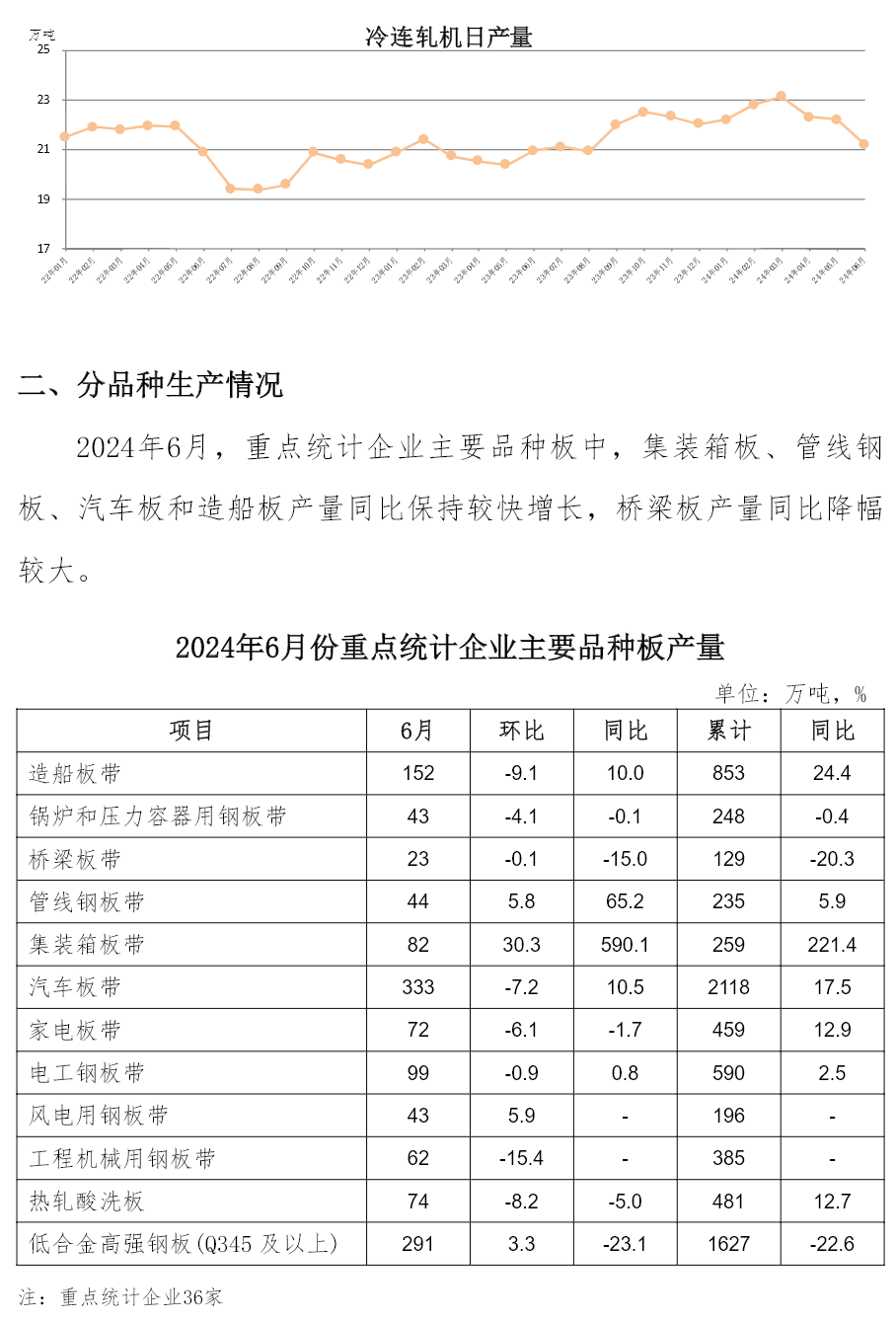中钢协:6月重点统计企业板带材总体产量同比小幅上升