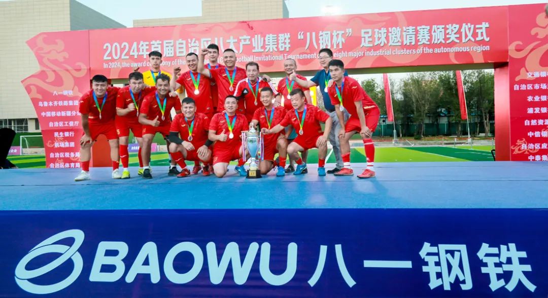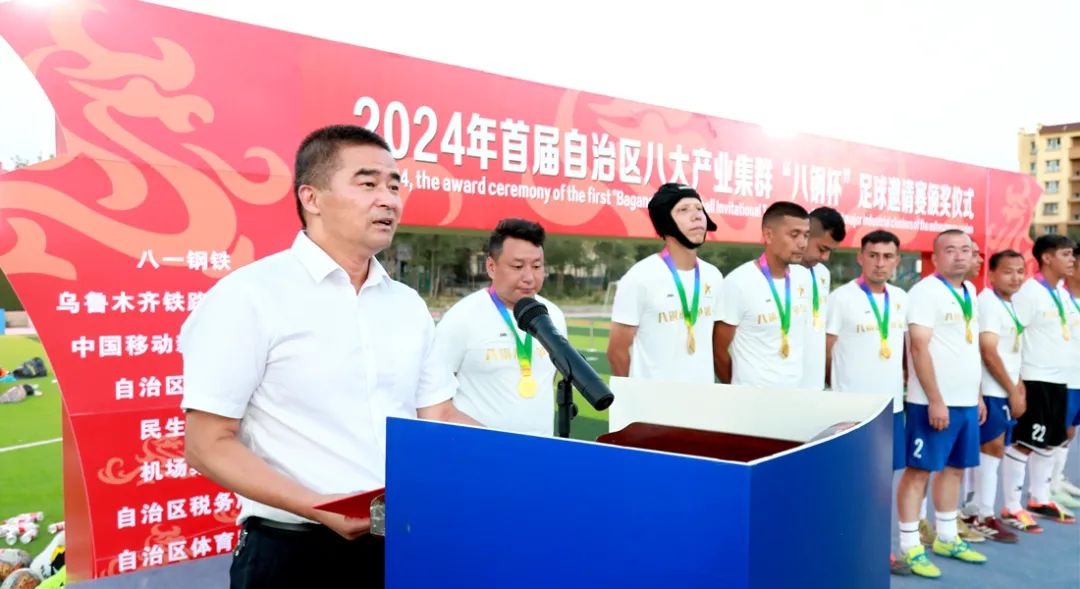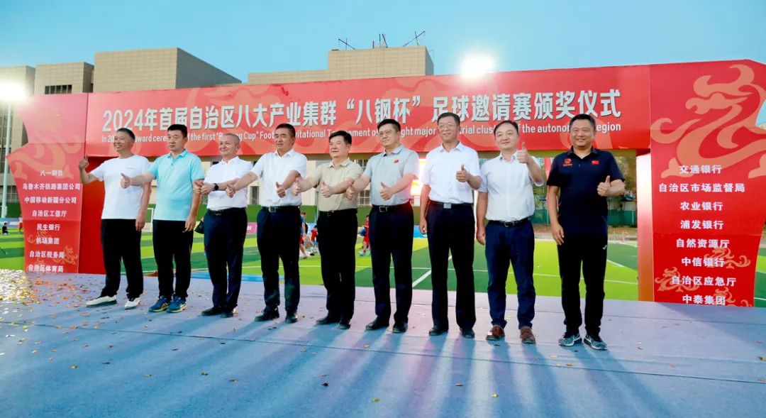闭幕式上,八钢公司领导与自治区各委办厅局领导、相关企业领导分别为2024年自治区首届八大产业集群“八钢杯”足球邀请赛获奖团队、获奖个人颁奖。