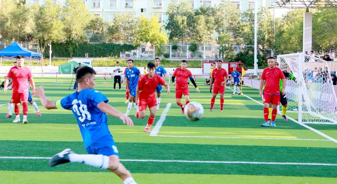 当天下午19点30分,冠亚军决赛在八一钢铁代表队和自治区体育局代表队之间展开,哨声响起的那一刻,两支球队一路冲杀进决赛的队伍就精锐尽出,激情相撞。球场上,你争我抢,拼战术、拼技艺,互不相让;看台上,加油声,呐喊声此起彼伏。正式比赛双方1比1握手言和,比赛进入令人窒息的点球大战。前六轮双方均全部罚中,但在第七轮的点球对决中,自治区体育局代表队点球意外踢飞,而八一钢铁队携主场之威,主罚队员顶住了巨大的压力,足球轻松破网,冠军奖杯花落钢城,顿时现场沸腾起来,欢呼声此起彼伏,为来之不易的胜利喝彩。