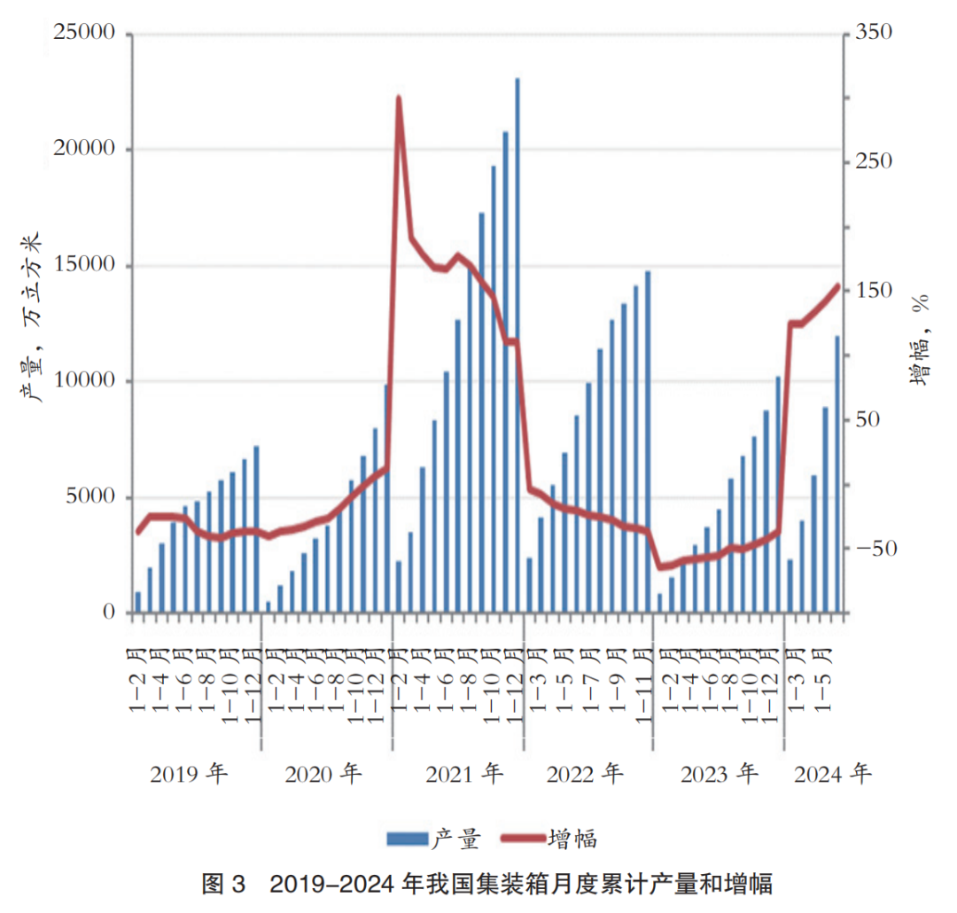 上半年,我国集装箱产量11932万立方米,同比大幅增长153.4%,增幅较1-5月扩大10.9个百分点,出口量同比增长113.2%。(图3)