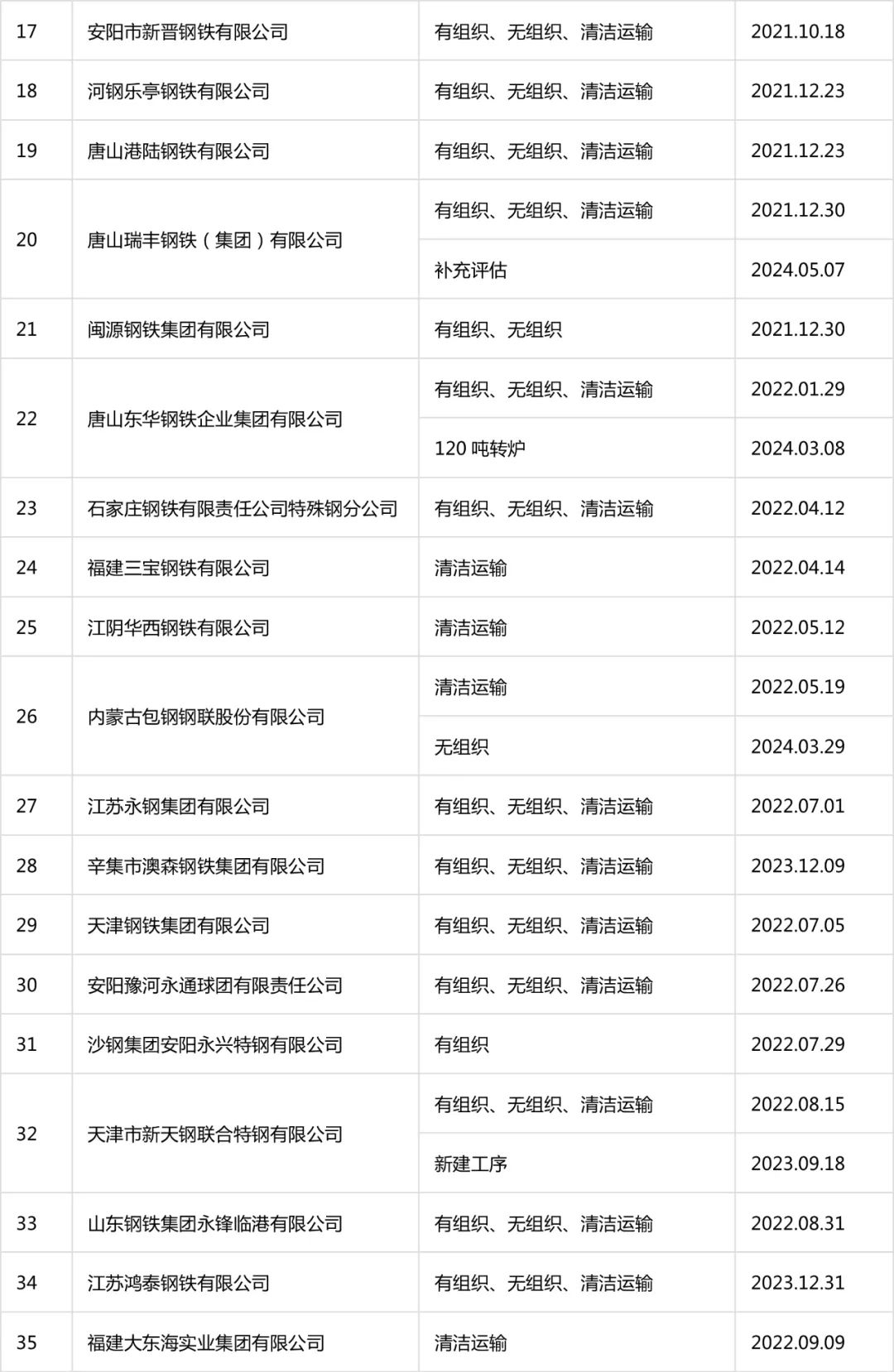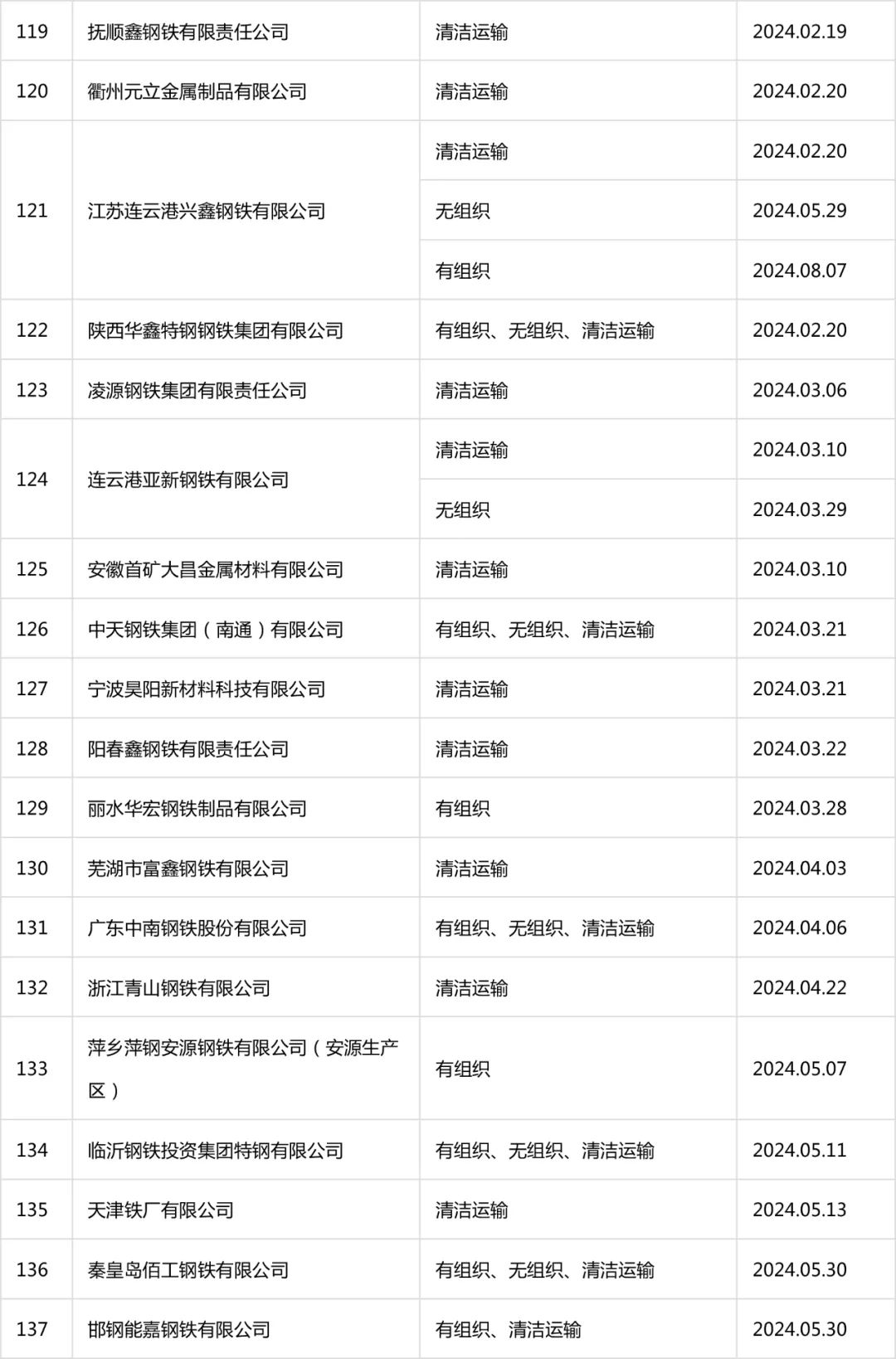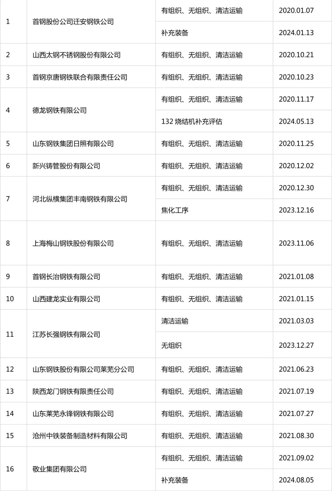 自2020年8月起,中国钢铁工业协会开展了钢铁企业超低排放改造和评估监测进展情况公示工作。截至目前,钢协网站已公示企业名单及各企业公示内容如下: