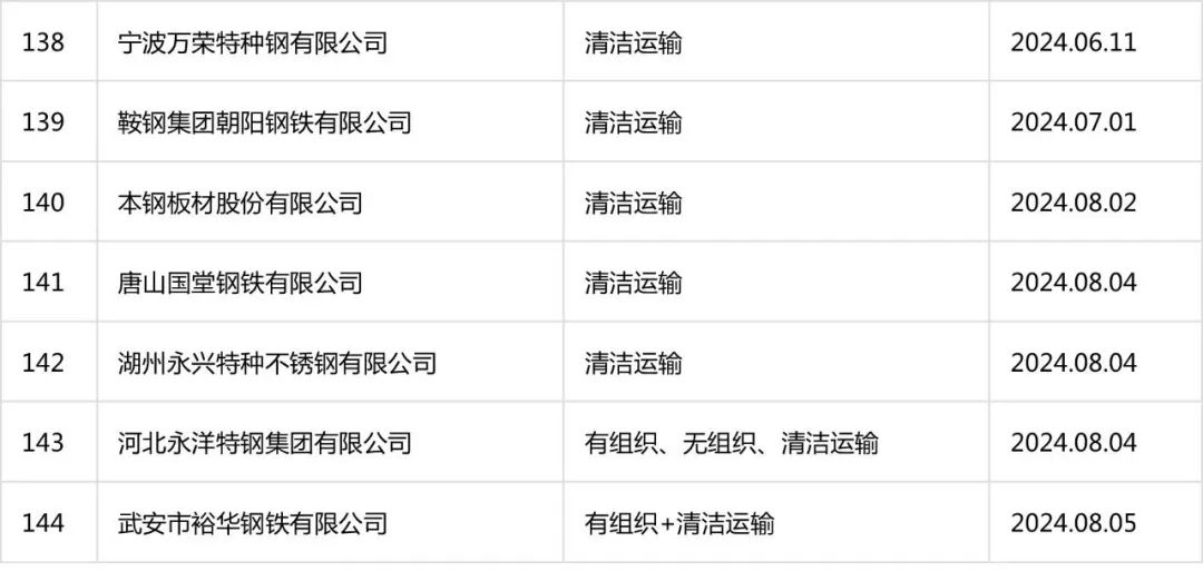 - 144家钢企已进行超低排放改造公示2024/8/21