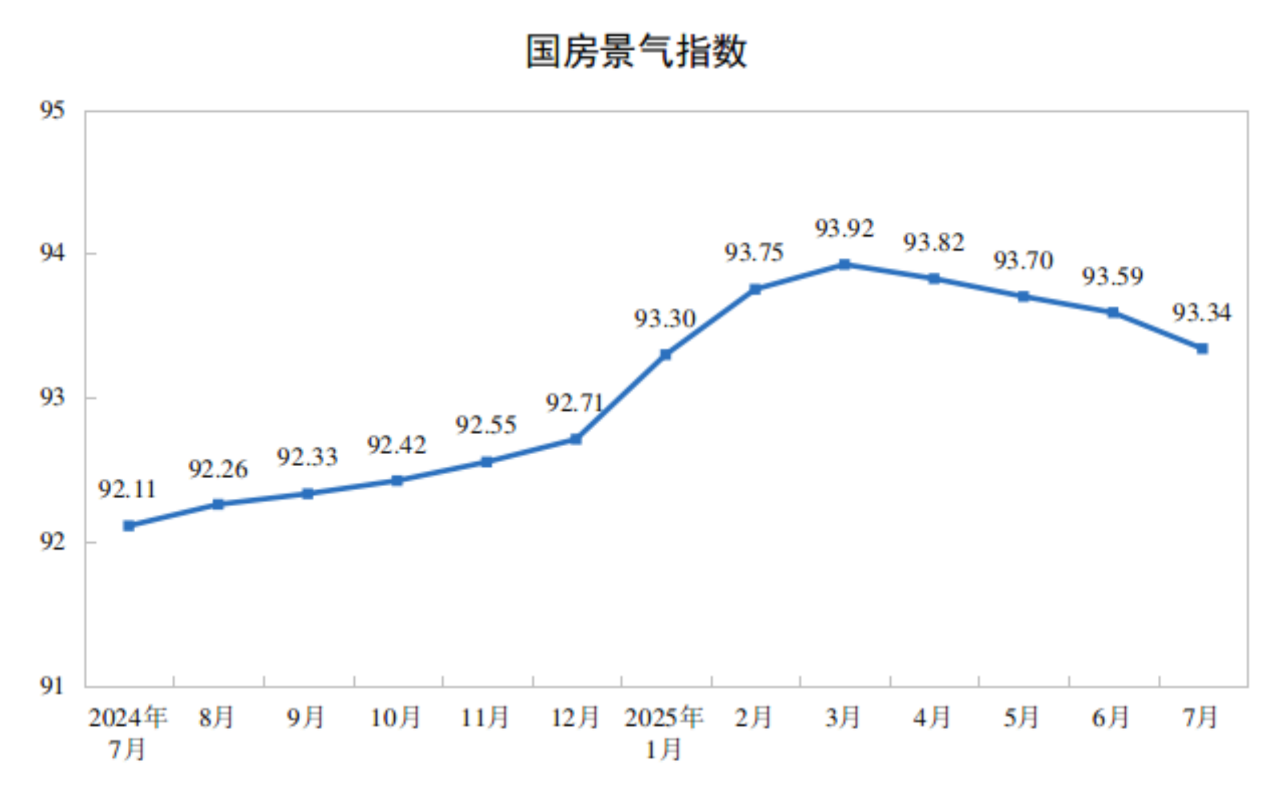 7月份,房地产开发景气指数(简称“国房景气指数”)为93.34。