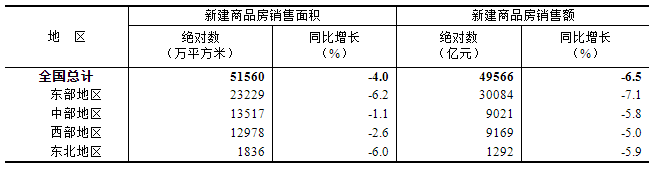 1—7月份,新建商品房销售面积51560万平方米,同比下降4.0%;其中住宅销售面积下降4.1%。新建商品房销售额49566亿元,下降6.5%;其中住宅销售额下降6.2%。