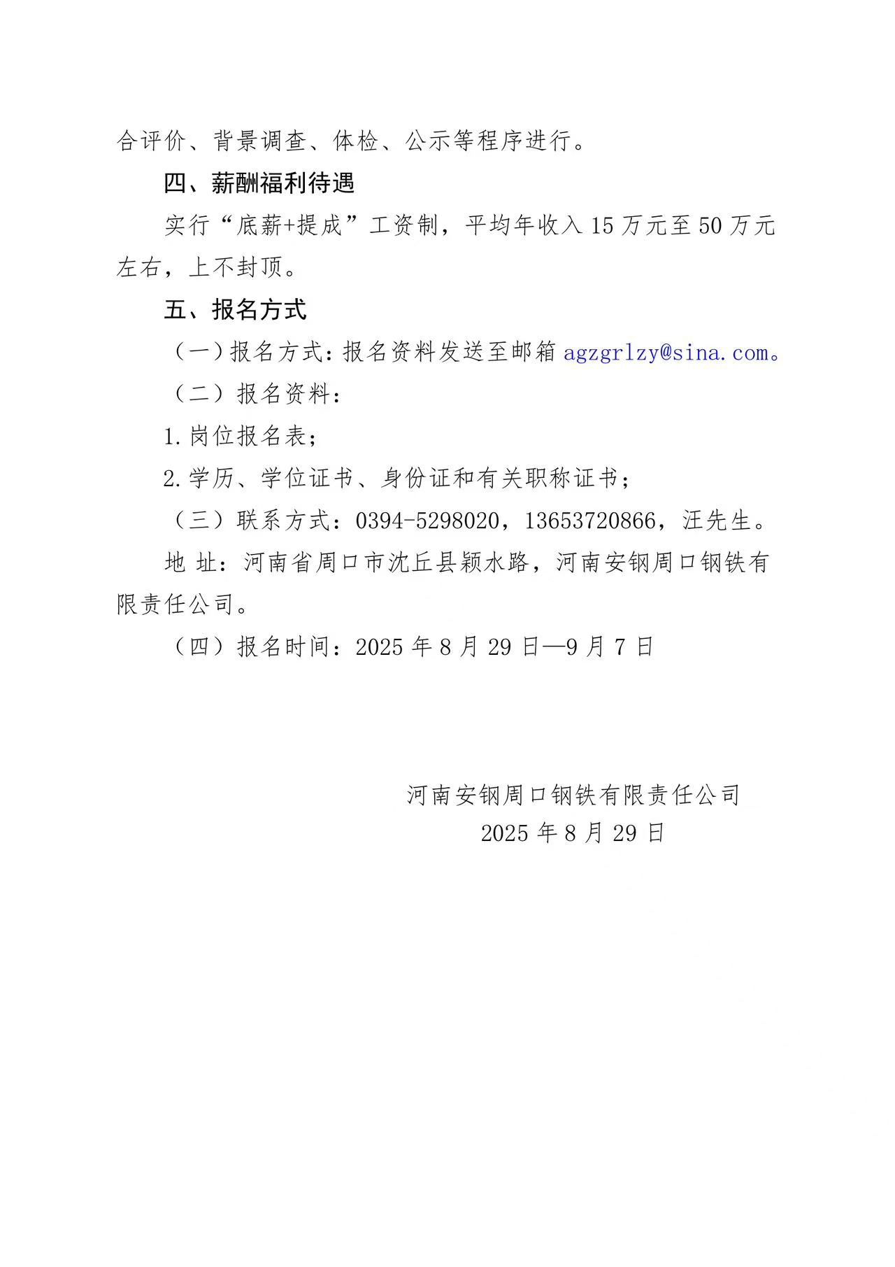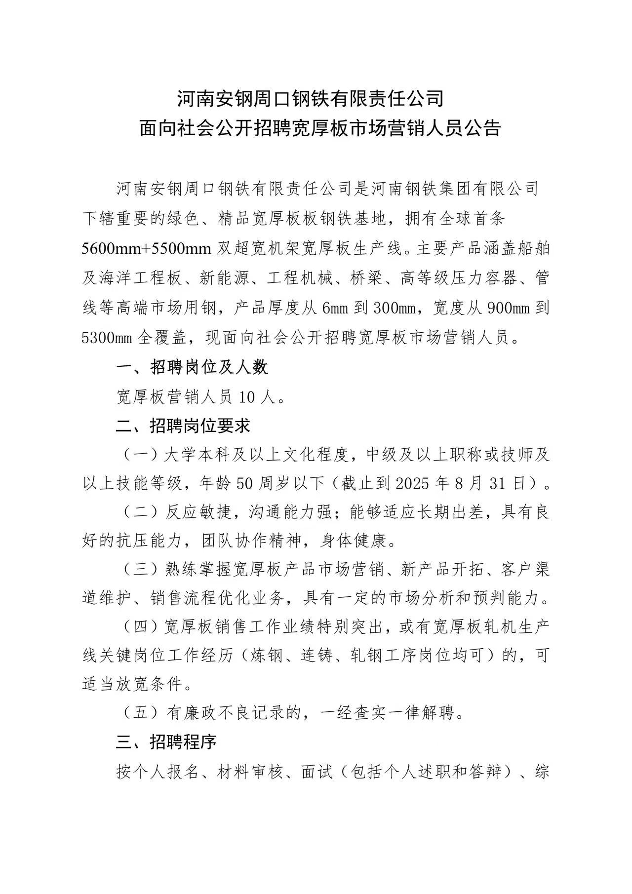 - 河南安钢周口钢铁公开招聘宽厚板市场营销人员2025/8/29
