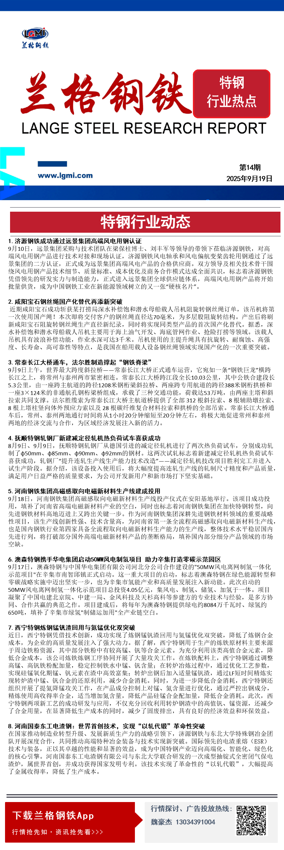 - 本周“特钢行业 我知道”(第十四期)2025/9/19