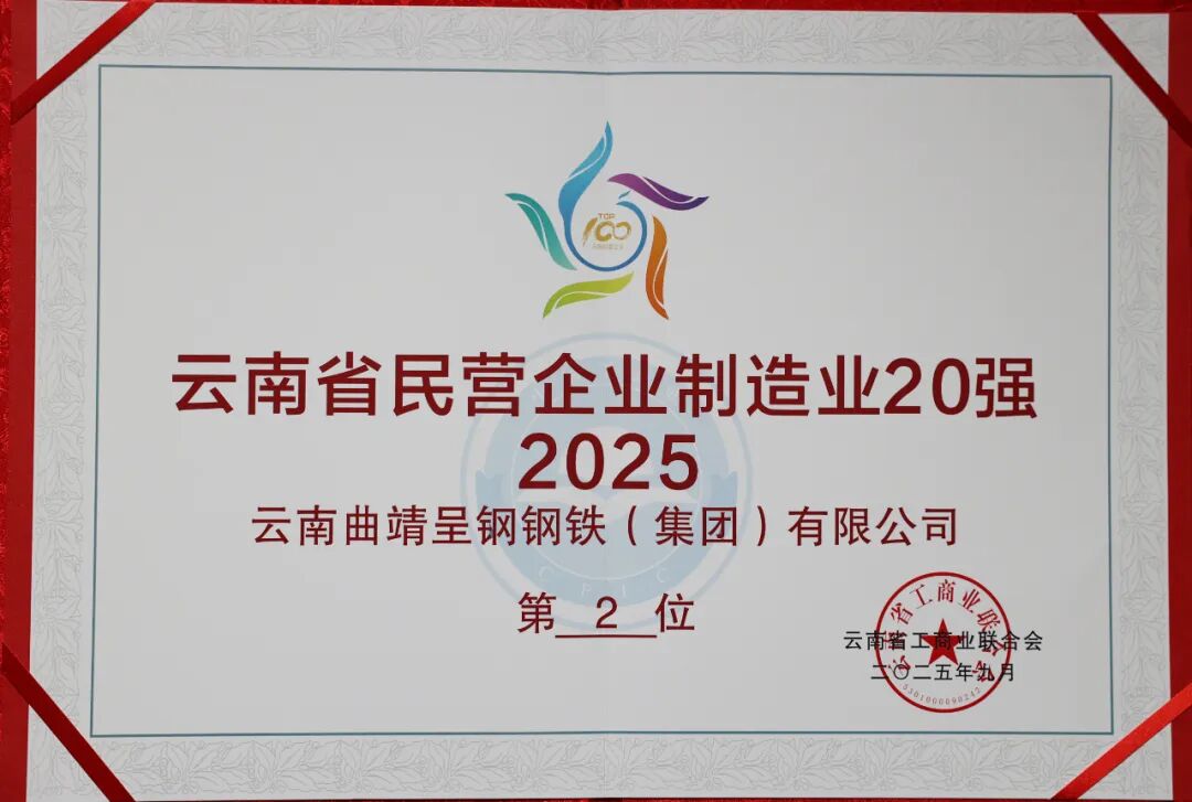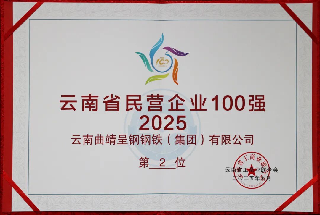 - 呈钢集团连续13年入围云南省民营企业100强榜单2025/9/22