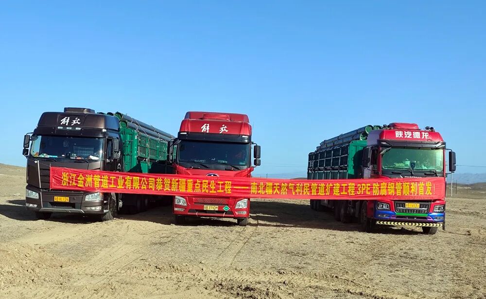 9月28日上午,四辆装载着“金洲”牌3PE防腐钢管大货车到达新疆阿勒泰地区项目现场,历经全程4000多公里、历时6天时间,顺利完成了首批的交货验收,产品用于新疆重点民生项目--南北疆天然气利民管道扩建工程,这是一场名符其实、不远千里的使命奔赴。