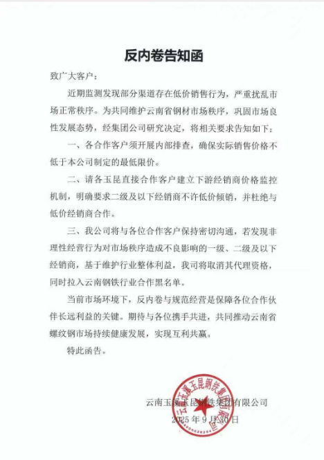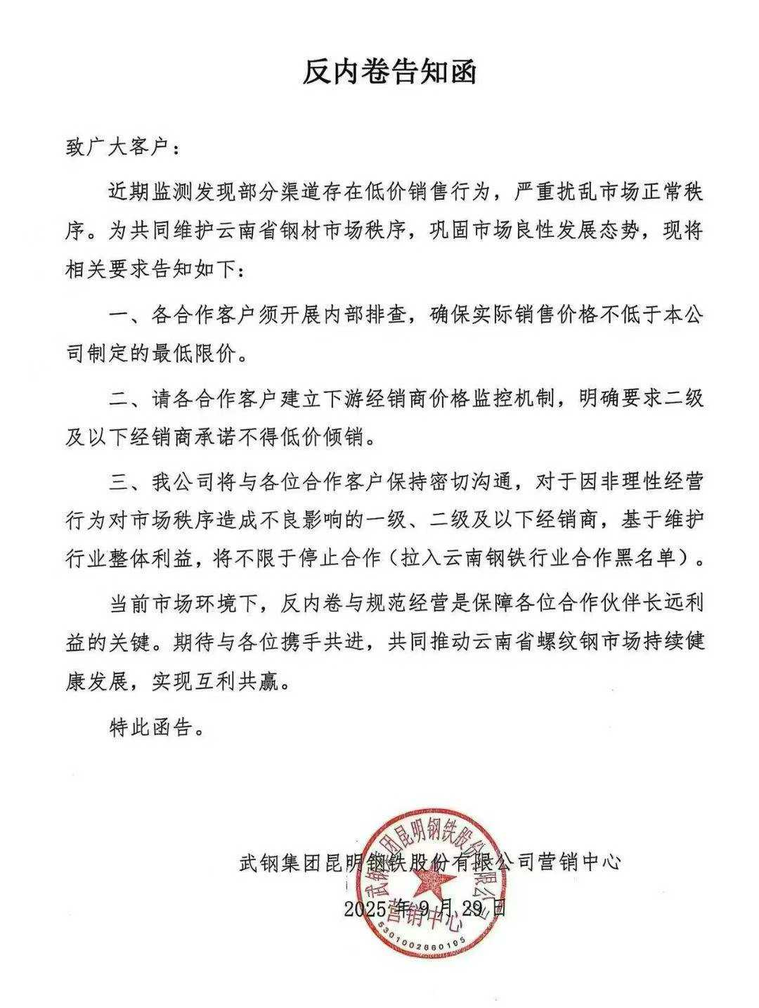 - 拒绝内耗!云南钢市主动打响“反内卷”第一枪2025/9/30