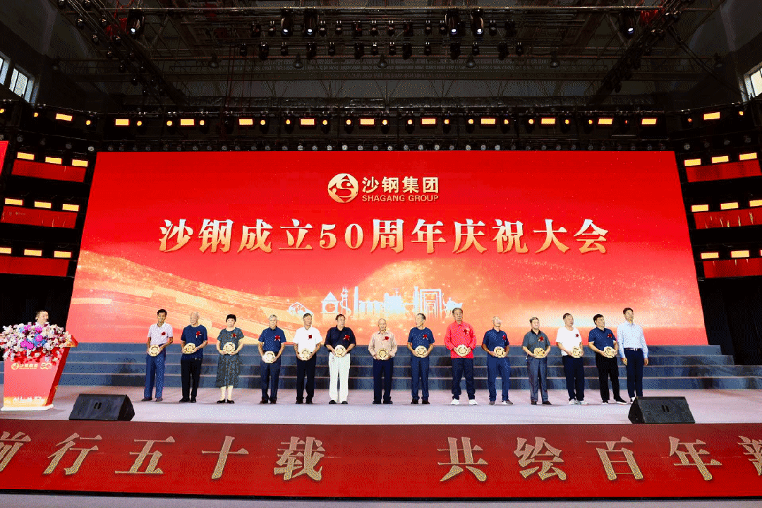 大会举行了“沙钢成立50周年纪念盘”颁授仪式。激昂的乐曲声中,沈彬等领导为老同志代表颁授承载着荣光的纪念盘,并同他们亲切握手、深情问候、合影留念。一阵阵雷鸣般掌声,汇聚成最深沉的爱戴与最诚挚的礼赞。