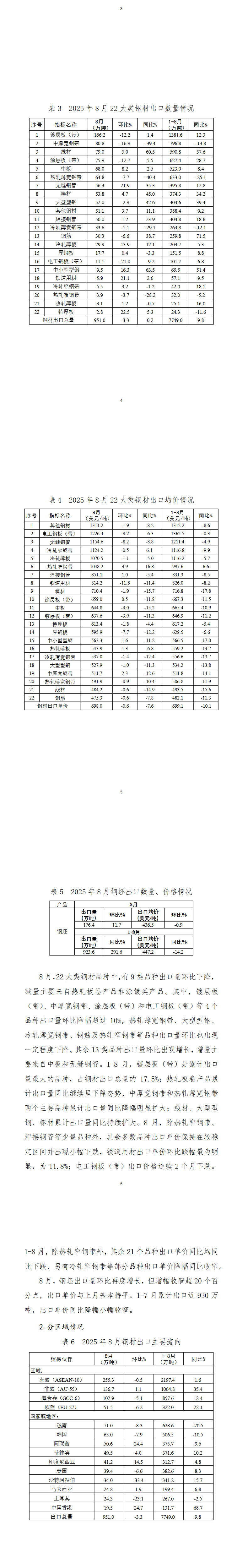 - 中钢协:8月钢铁产品进出口月报2025/10/9